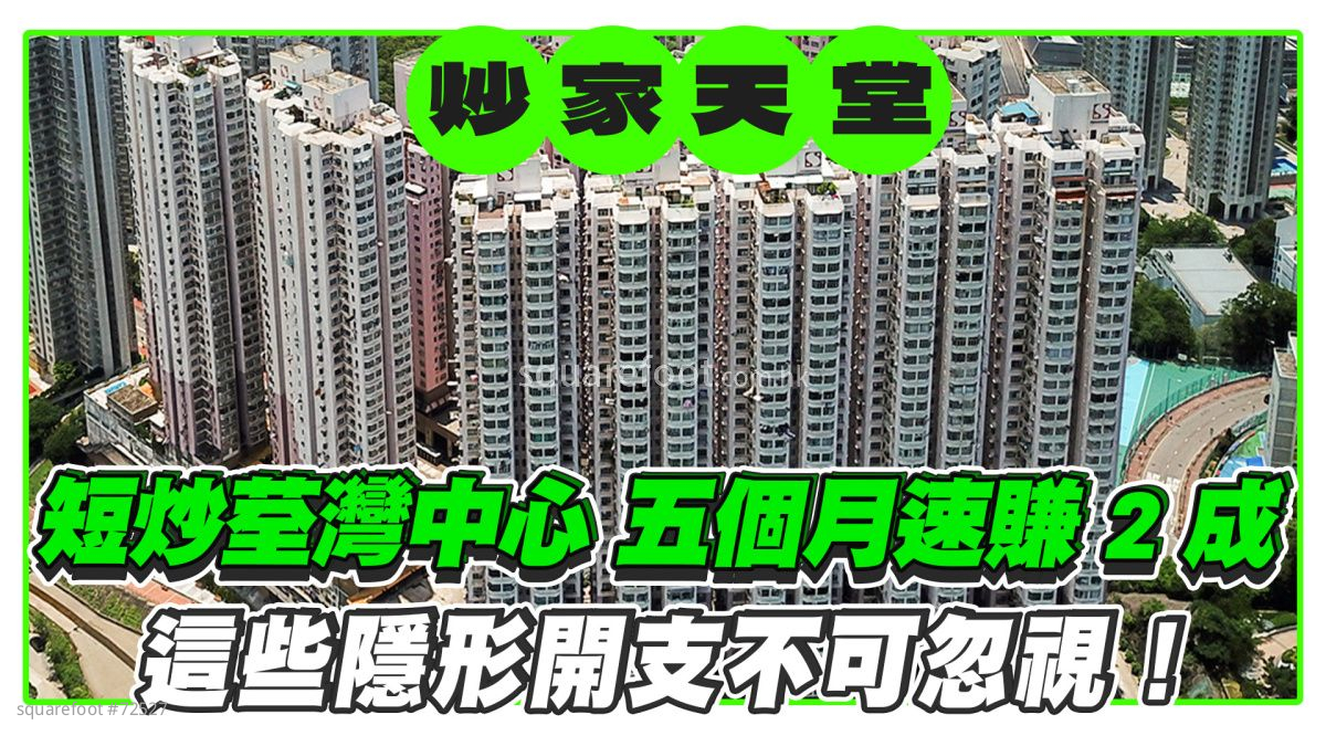 近期楼市回暖,短炒获利个案增多,账面升值幅度可观,惟可能涉及不少隐形开支。以上述荃湾中心个案为例,炒家的开支包括物业印花税100元、买卖律师费约10,000元、及一买一卖的经纪佣金各1%,约6.05万元。假设该炒家实力不俗,是以现金形式一炮过买楼,则杂费开支约为100+10,000+60,500=7,0600元,实际获利约48万元。